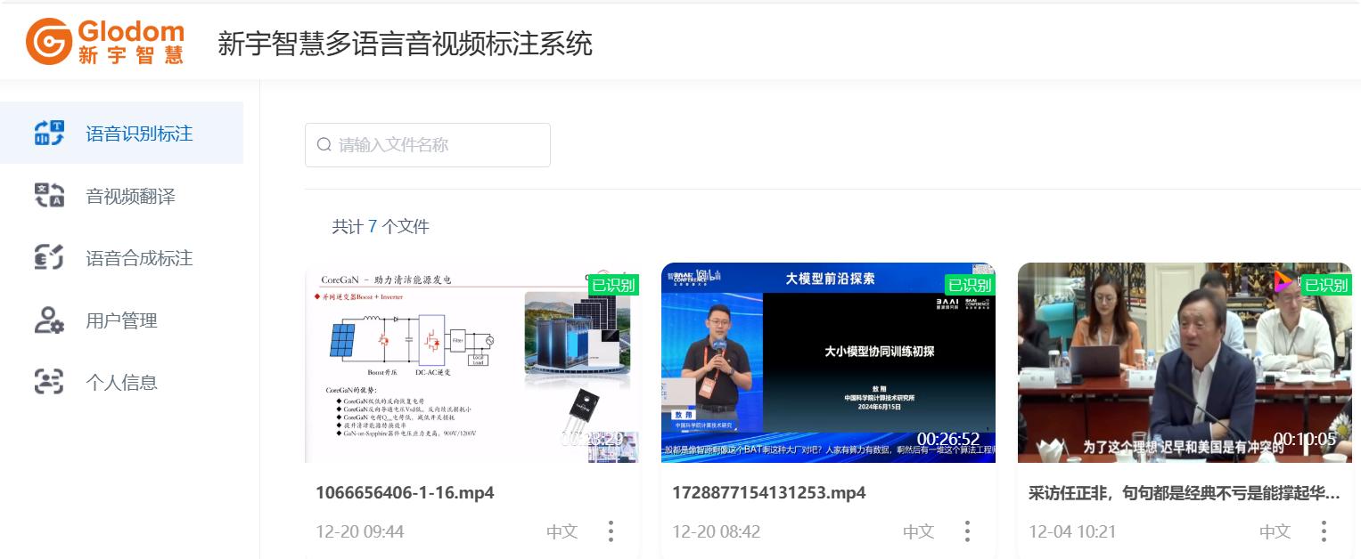 新宇智慧自主研發(fā)的多模態(tài)語音標(biāo)注平臺(tái),集成語音識(shí)別標(biāo)注、音視頻翻譯、語音合成標(biāo)注等核心模塊,全面支持文本譯后編輯與多語言處理,為AI語音模型訓(xùn)練提供高精度、高效率的數(shù)據(jù)服務(wù)解決方案。