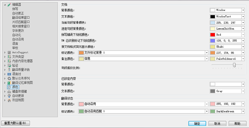 該功能可以幫助譯員把當(dāng)前翻譯好的句子沿用翻譯到后面的 100% 句子,這樣就可以保證前后譯文的一致性。是一個(gè)非常有價(jià)值的功能。雖然該功能在斷句比較多時(shí)也可能出現(xiàn)錯(cuò)誤沿用。不過Trados 會(huì)給出沿用標(biāo)記以顯示這是沿用的句段,因此我們只需要設(shè)置好默認(rèn)沿用標(biāo)記就可以了。設(shè)置步驟:在“文件”中單擊“選項(xiàng)”。在“選項(xiàng)”中選擇“顏色”,然后選擇“背景顏色”下拉列表中的 “自動(dòng)沿用”。調(diào)整旁邊的顏色選項(xiàng),選擇能突出顯示的選項(xiàng)即可。