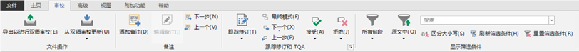 打開“Sdlxliff 雙語(yǔ)文件”,單擊“審?!辈藛渭纯稍谄聊坏闹虚g部分看到一個(gè)“搜索”欄,如下圖所示。